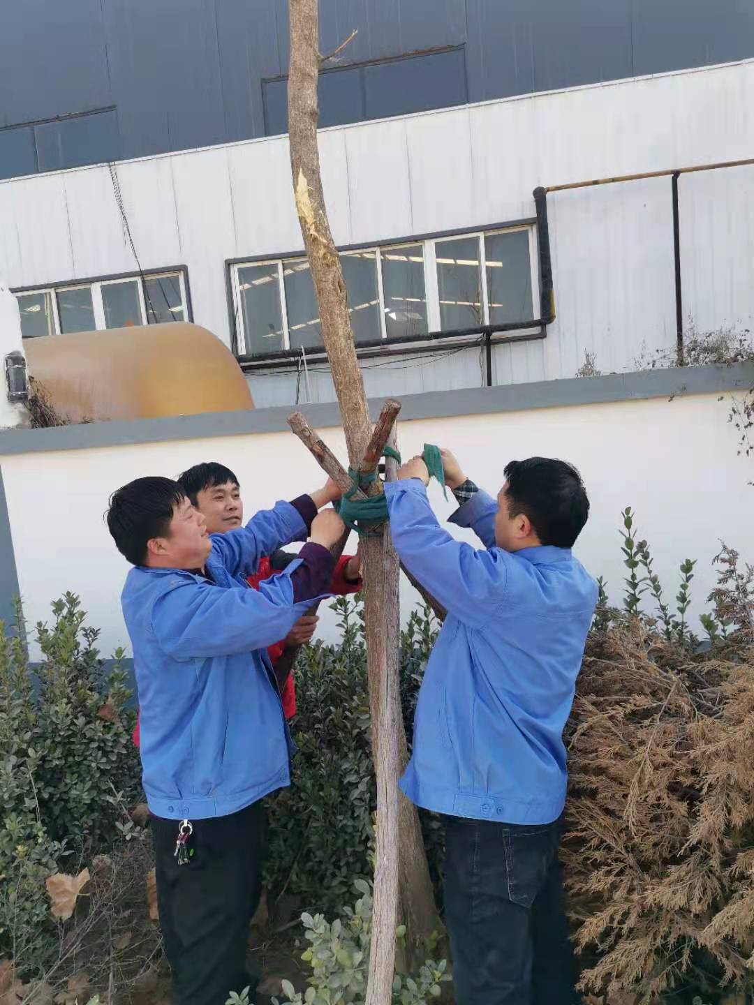 2月20日下午,公司組織全體行管人員,與車間負(fù)責(zé)人30余人參加“植樹造林,綠化廠區(qū)”主題活動。在廠區(qū)北墻外綠化帶,種植國槐36棵。大家積極踴躍參加植樹義務(wù)勞動,不怕苦,不叫累,相互協(xié)作,相互配合,有的挖坑,有的抬樹、有的種樹、有的澆水,通過兩個小時的勞動,圓滿完成了植樹任務(wù)。